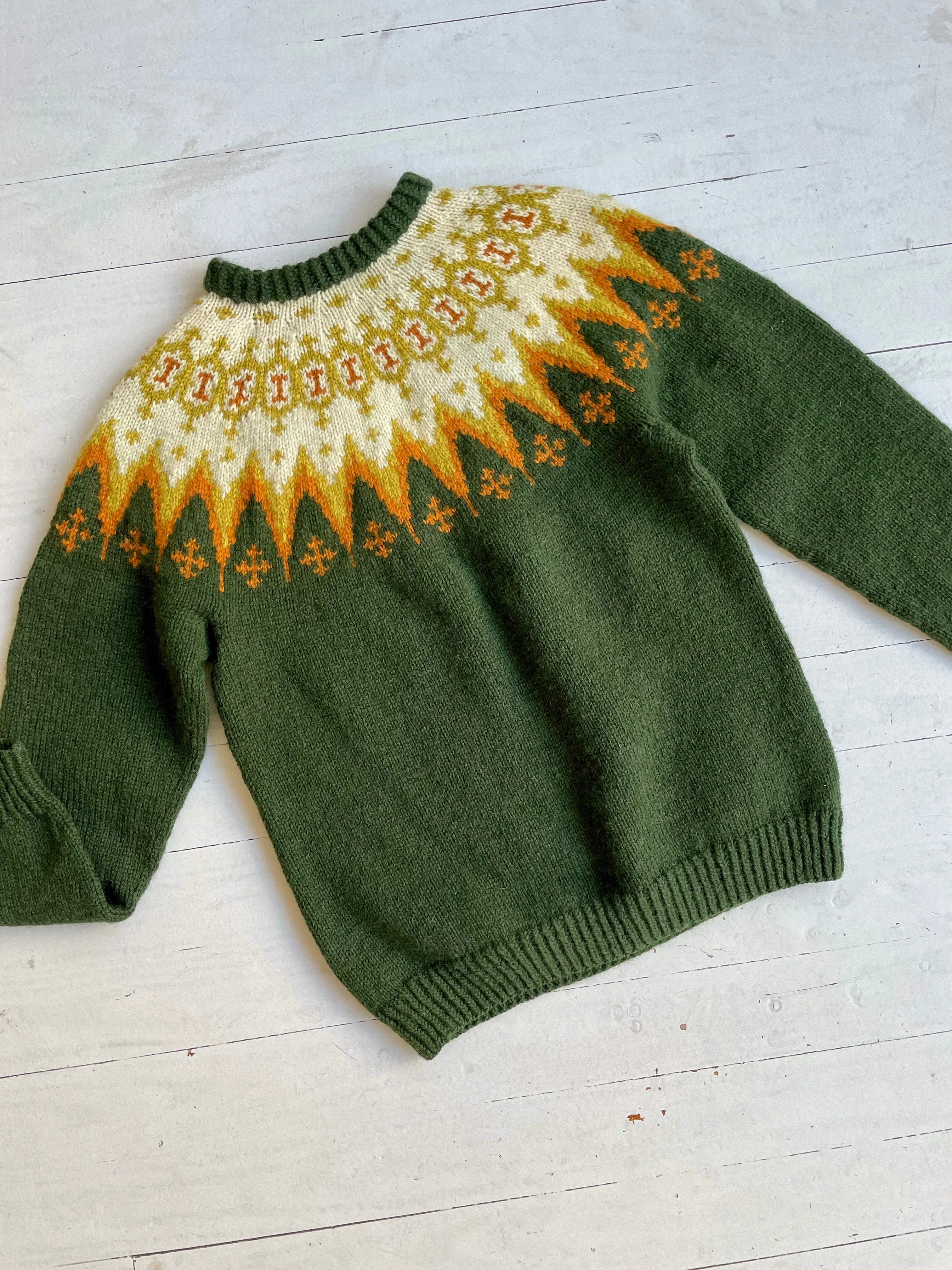 Vintage 1950s wool sweater, made in Norway with such an eye-catching colorway and pattern. A thick and warm sweater that is actually not itchy!